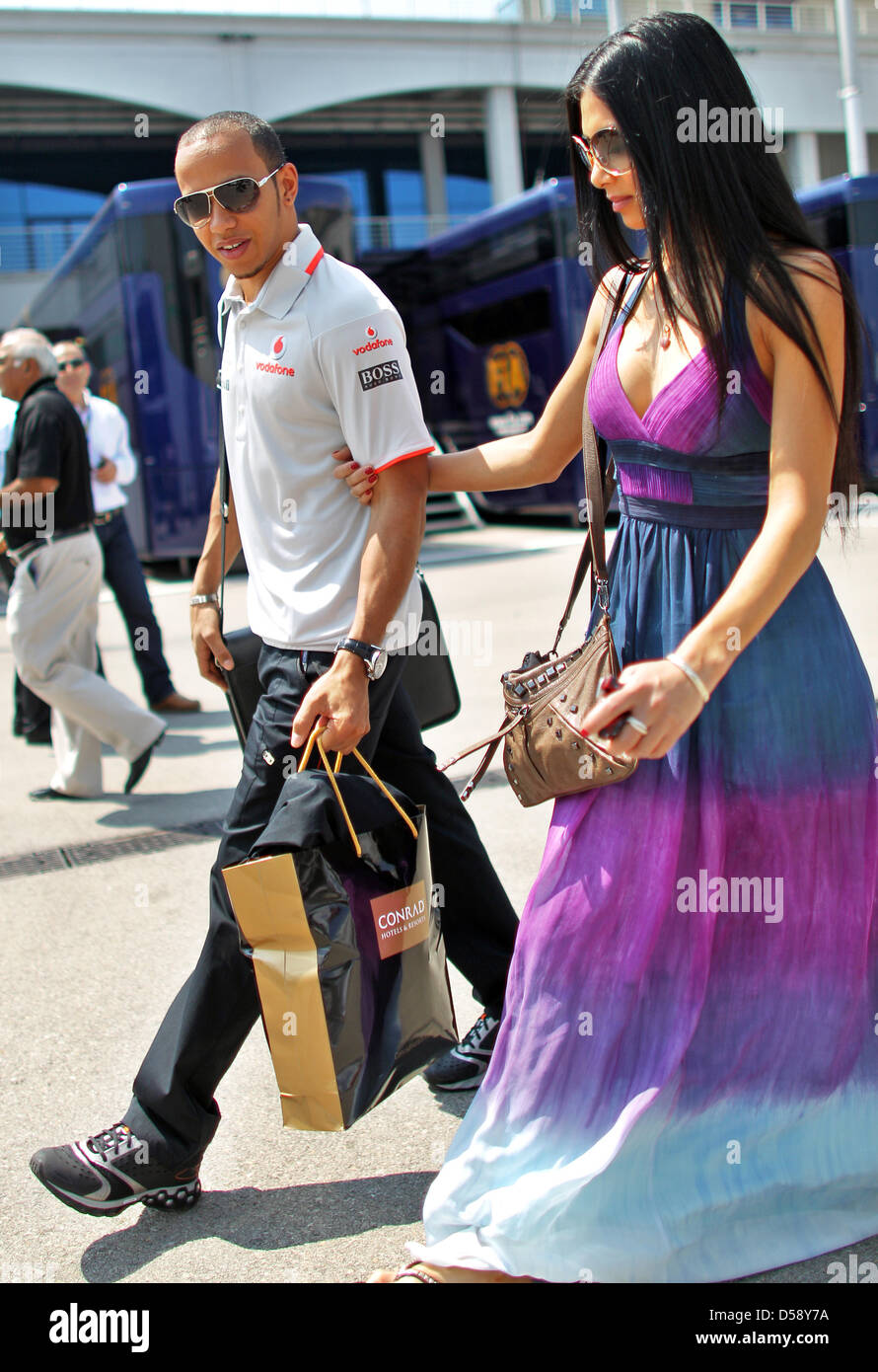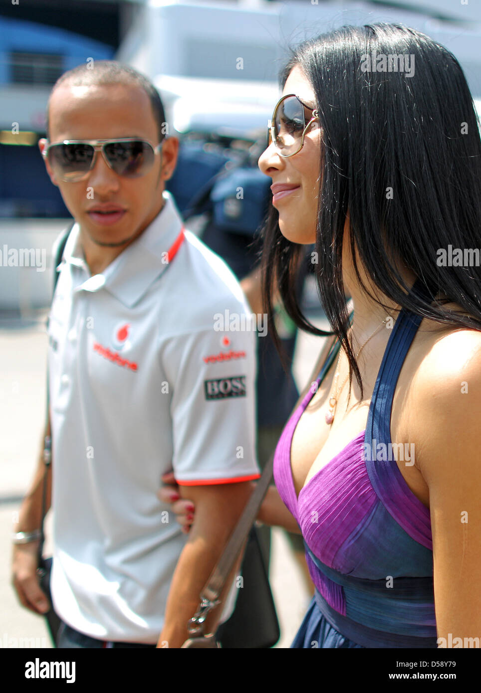 British Driver Lewis Hamilton Of Mclaren Mercedes And His Partner Nicole Scherzinger Singer Of Us Band Pussycat Dolls Arrive At The Drivers Parade Ahead Of The Formula One Grand Prix Of Turkey In